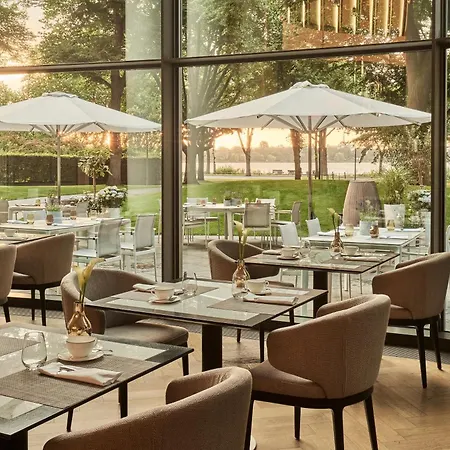 The Fontenay Hamburg ist ein luxuriöses Hotel am Alsterufer, das eine Vielzahl an Annehmlichkeiten bietet. Die Gäste können die geräumigen Zimmer mit raumhohen Fenstern und herrlichem Seeblick genießen. Das hoteleigene Gourmetrestaurant Lakeside bietet köstliche Speisen mit Blick auf die Alster, während der Wellnessbereich auf dem Dach einen Innen-/Außenpool enthält. Nahegelegene Attraktionen wie die Elbphilharmonie machen es zu einem idealen Hotel für jeden Reisenden.